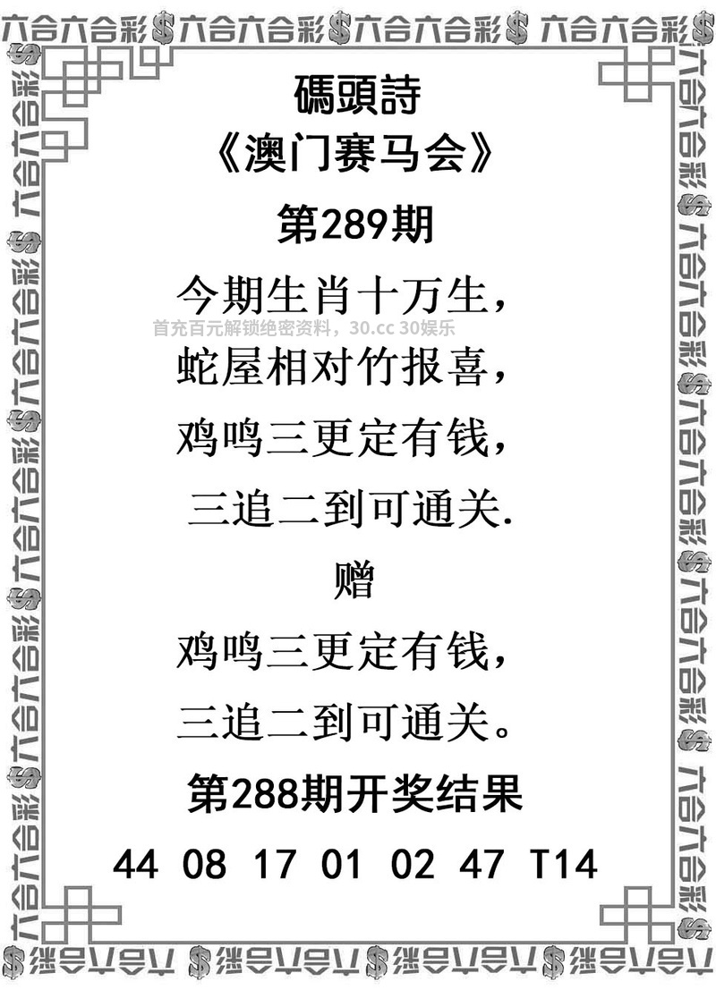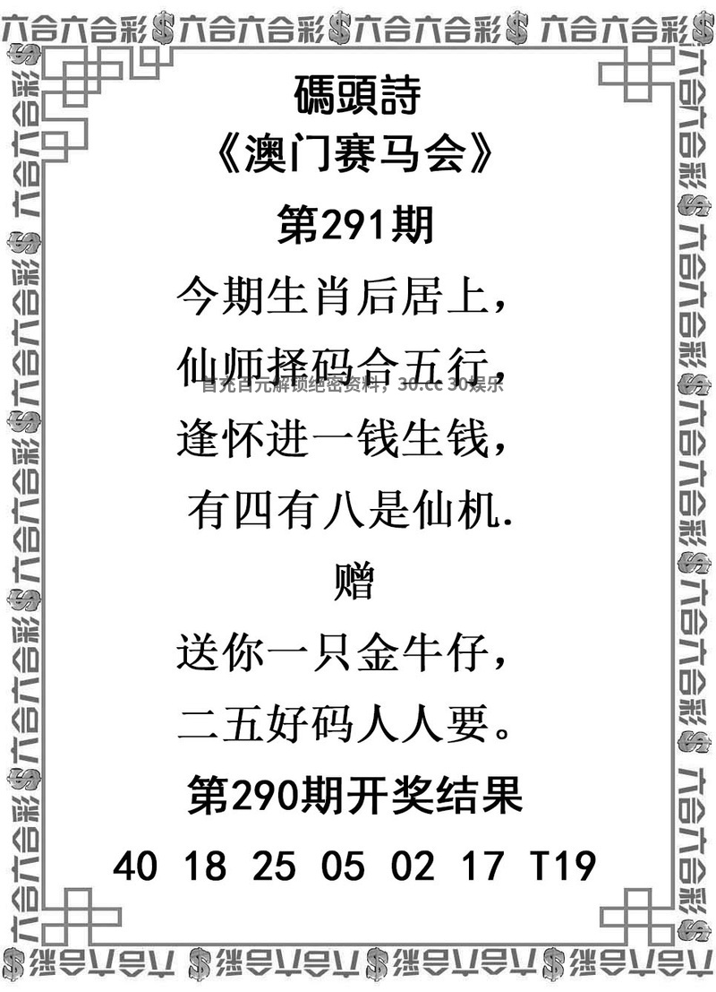 289期:✨ 【鸡09.猪07.牛17.狗20.猴34】 |